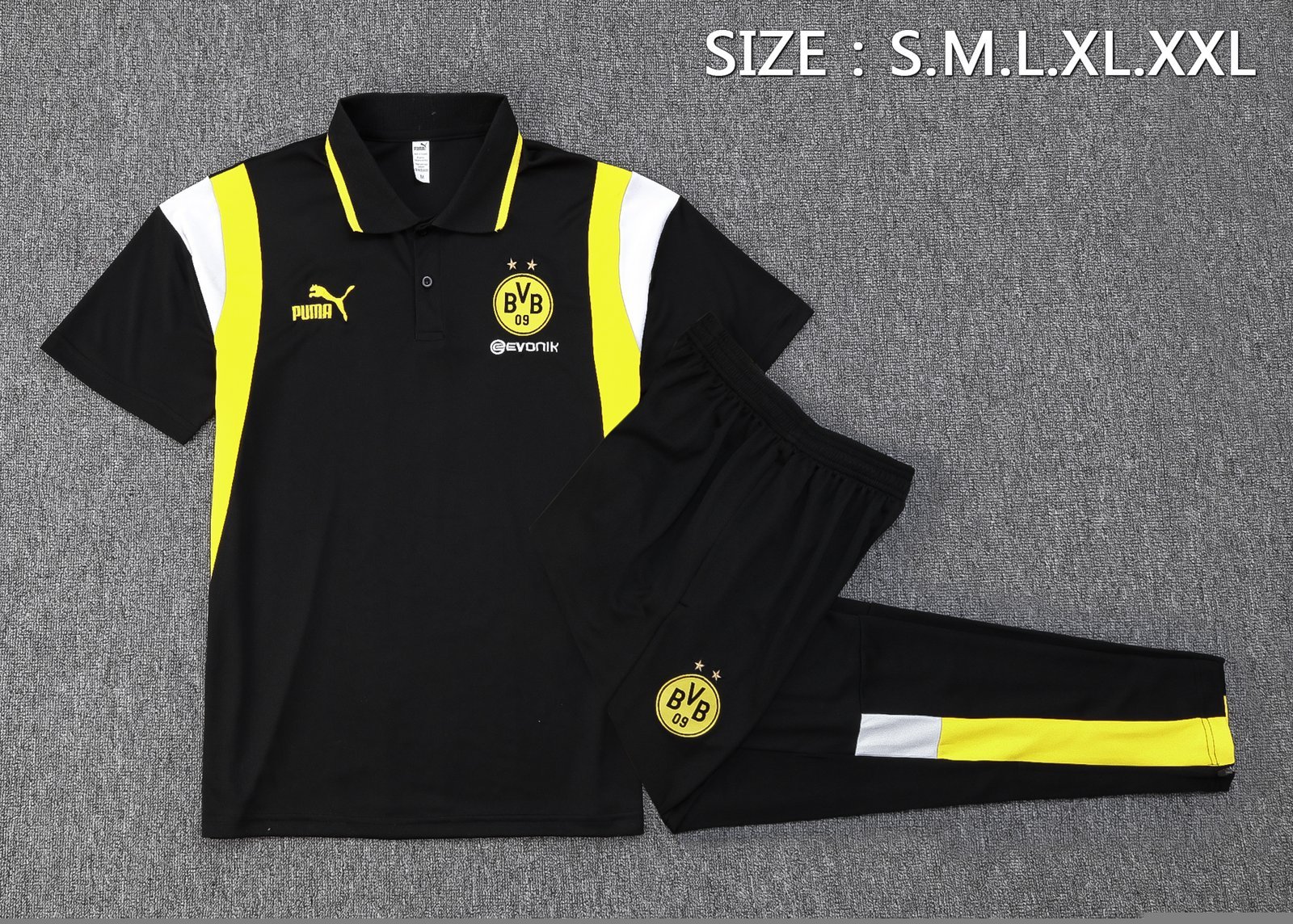C1063# 2324polo Dortmund black (white and yellow shoulders)