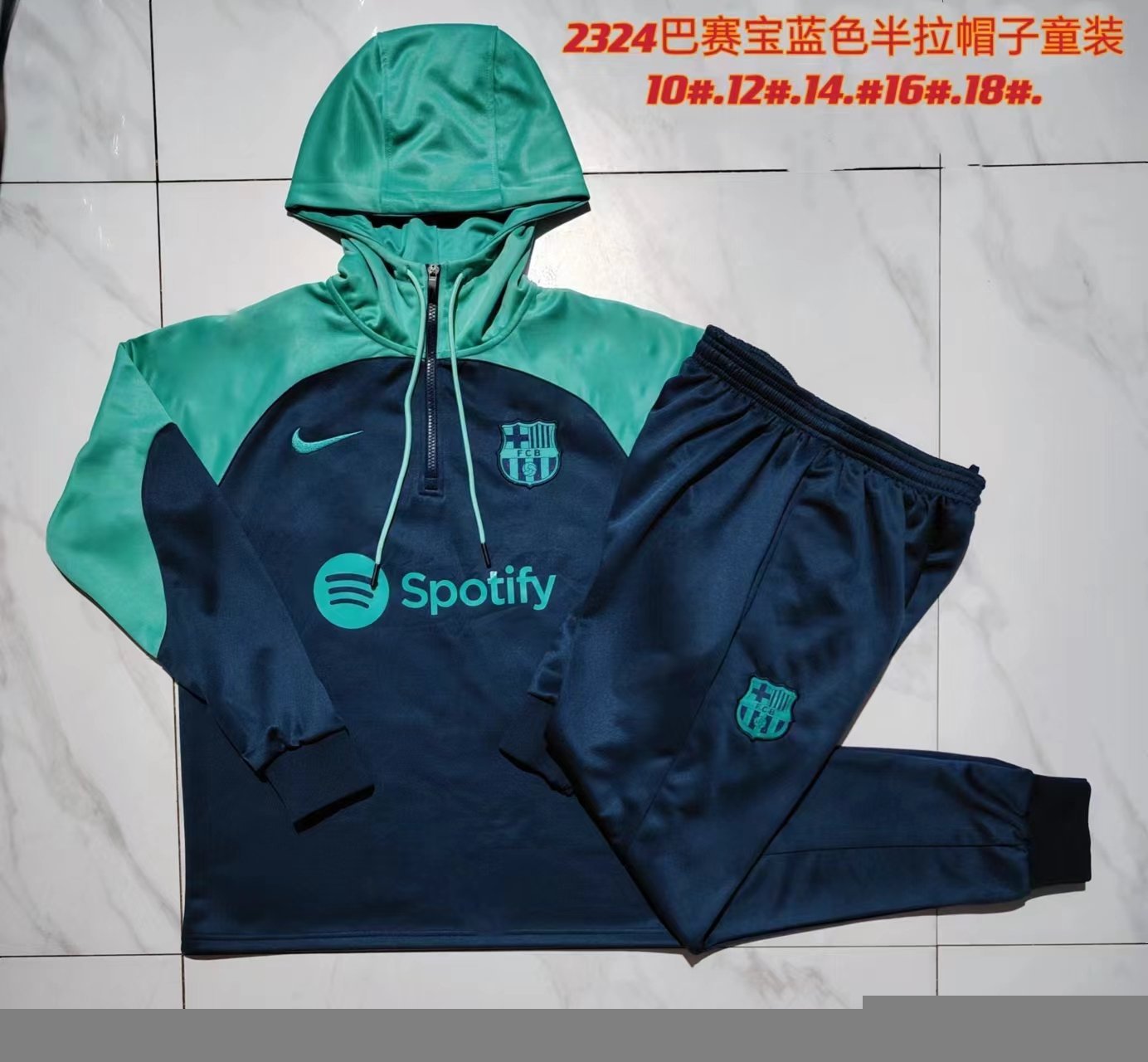 E795# 2324 Half-pull hat Barcelona royal blue children’s clothing (sleeves green)-Barcelona