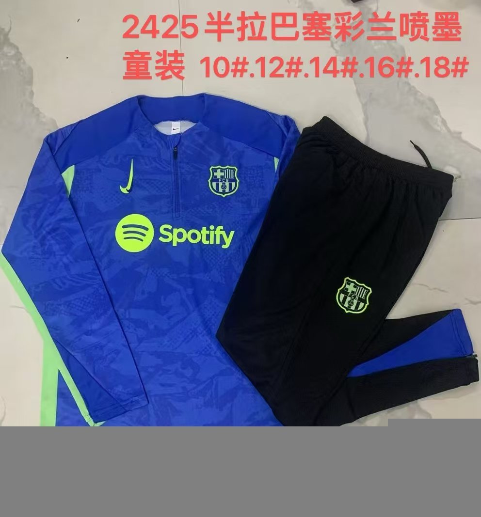 E929# 2425 Half-pull Barcelona colorful blue inkjet children’s clothing (color matching fluorescent green)-Barcelona