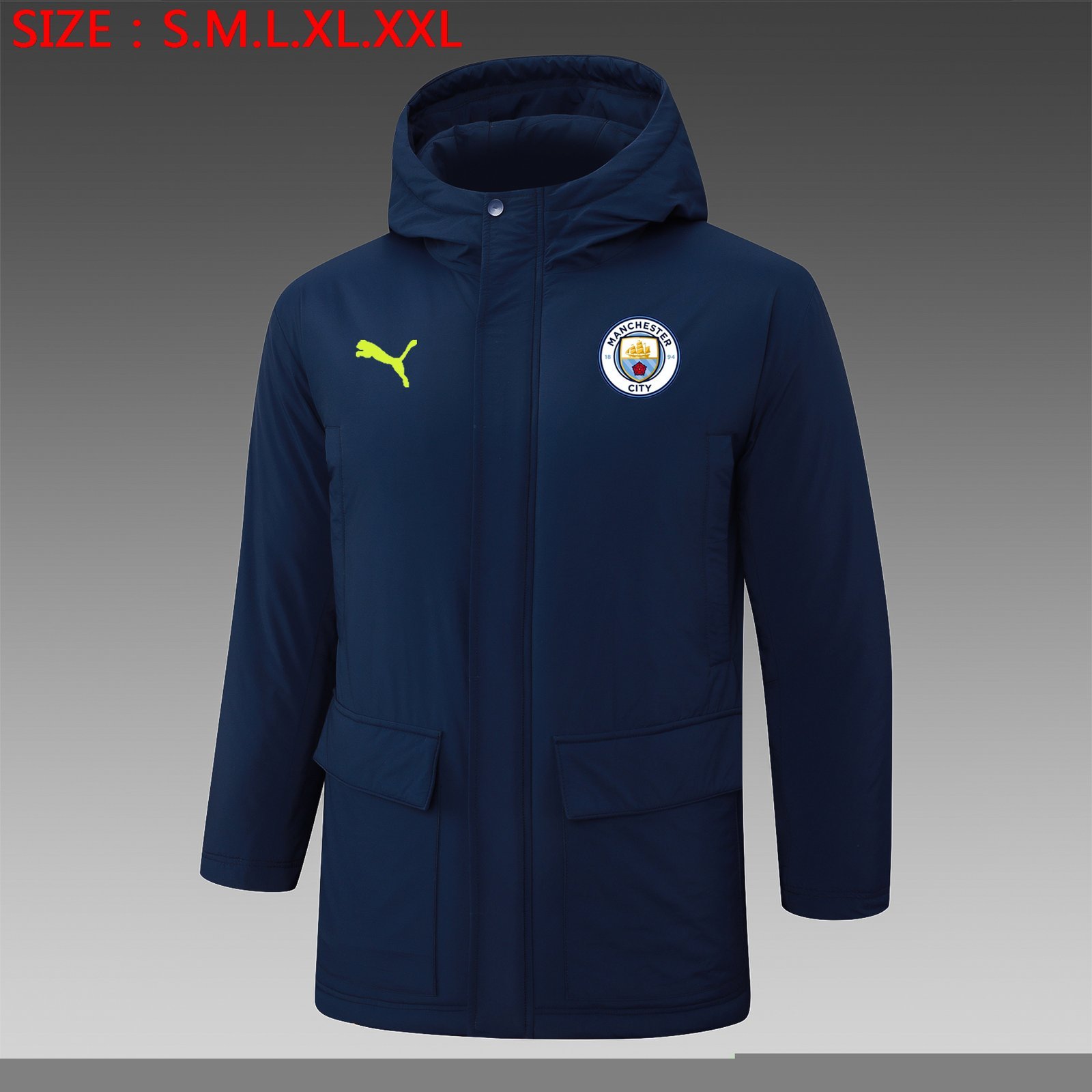 G238# 2425 Manchester City Royal Blue cotton coat (green Puma)–Manchester City