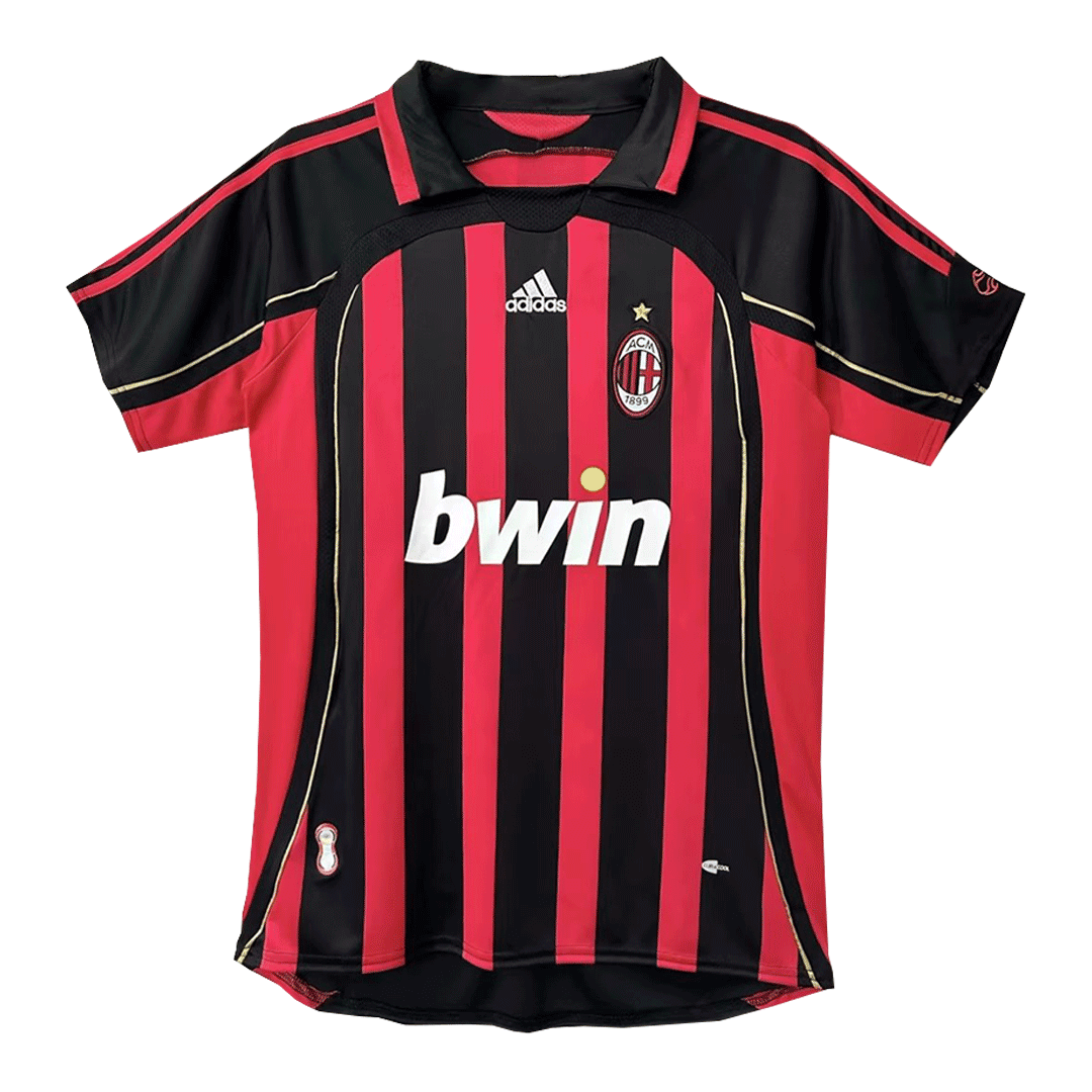 06-07 AC Milan Retro Home Red&Black Soccer Jersey ShirtModel Year:?2006-2007Confederate: UEFACountry and League:?England-Premier LeagueMaterial:?PolyesterType of Brand Logo:?EmbroideredType of Team Badge:?Sewn OnVersion:ReplicaMade for: Man